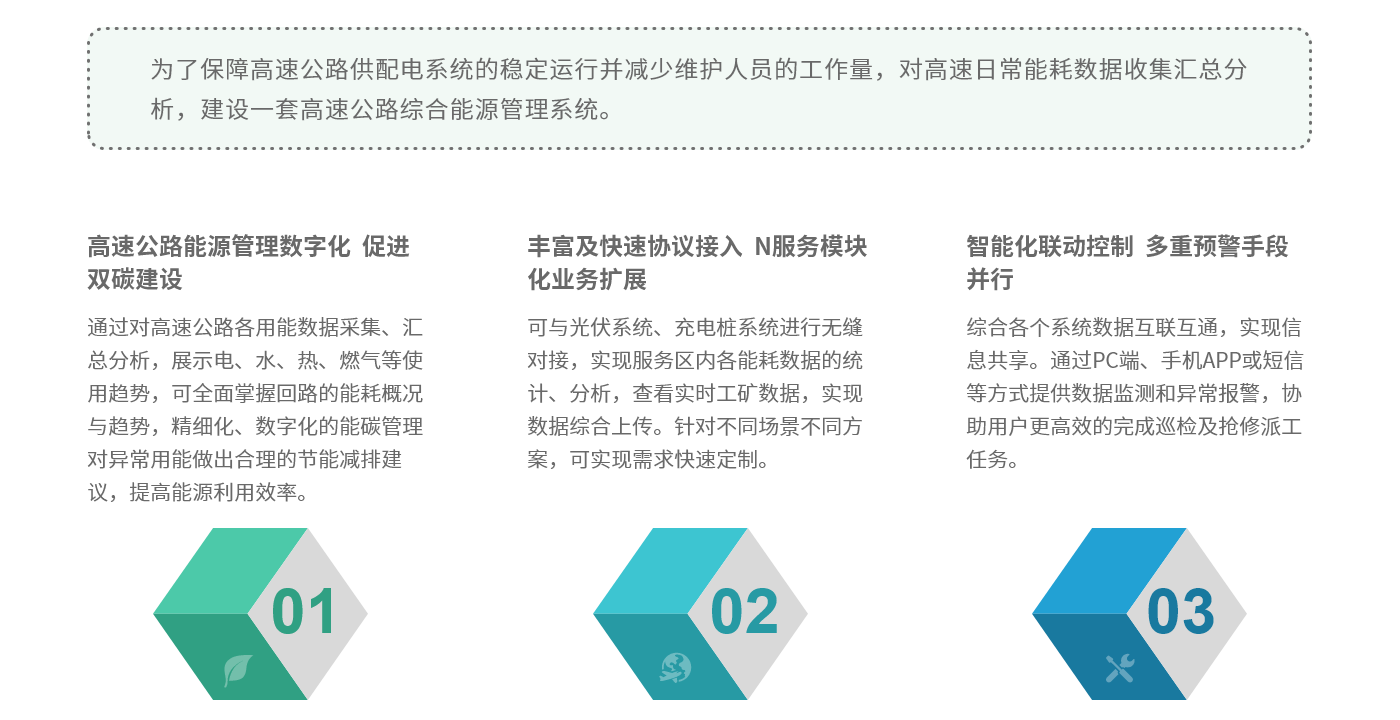 高速公路隧道、收費(fèi)站、服務(wù)區(qū)的日常運(yùn)營能耗的監(jiān)測管理既是實(shí)現(xiàn)“碳達(dá)峰、碳中和”的重點(diǎn)工作,也是企業(yè)實(shí)現(xiàn)綠色低碳發(fā)展的迫切需要,同時(shí)通過能耗在線監(jiān)測,可有效發(fā)現(xiàn)“滴冒跑漏”,節(jié)能降耗,有利于企業(yè)降本增效。